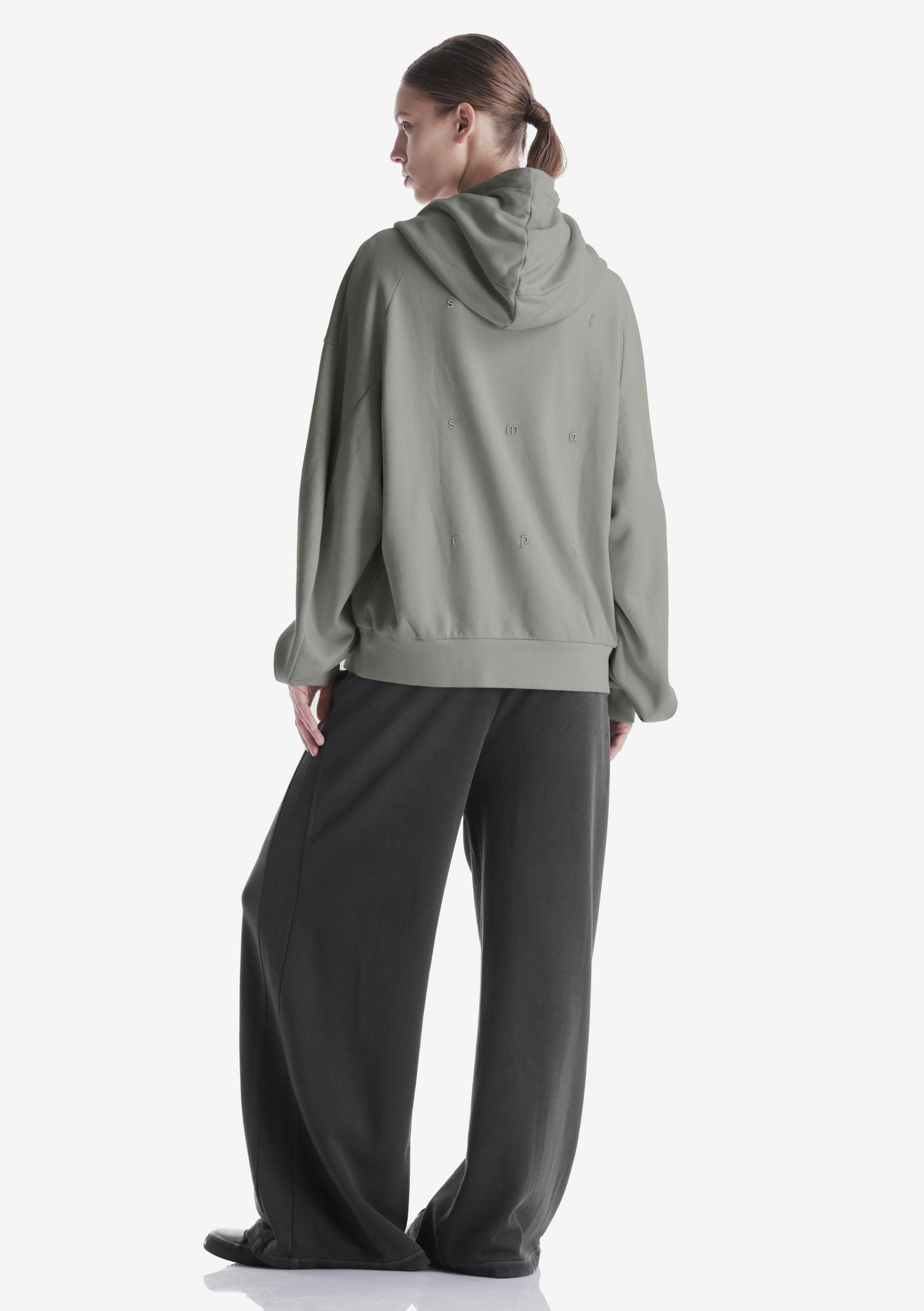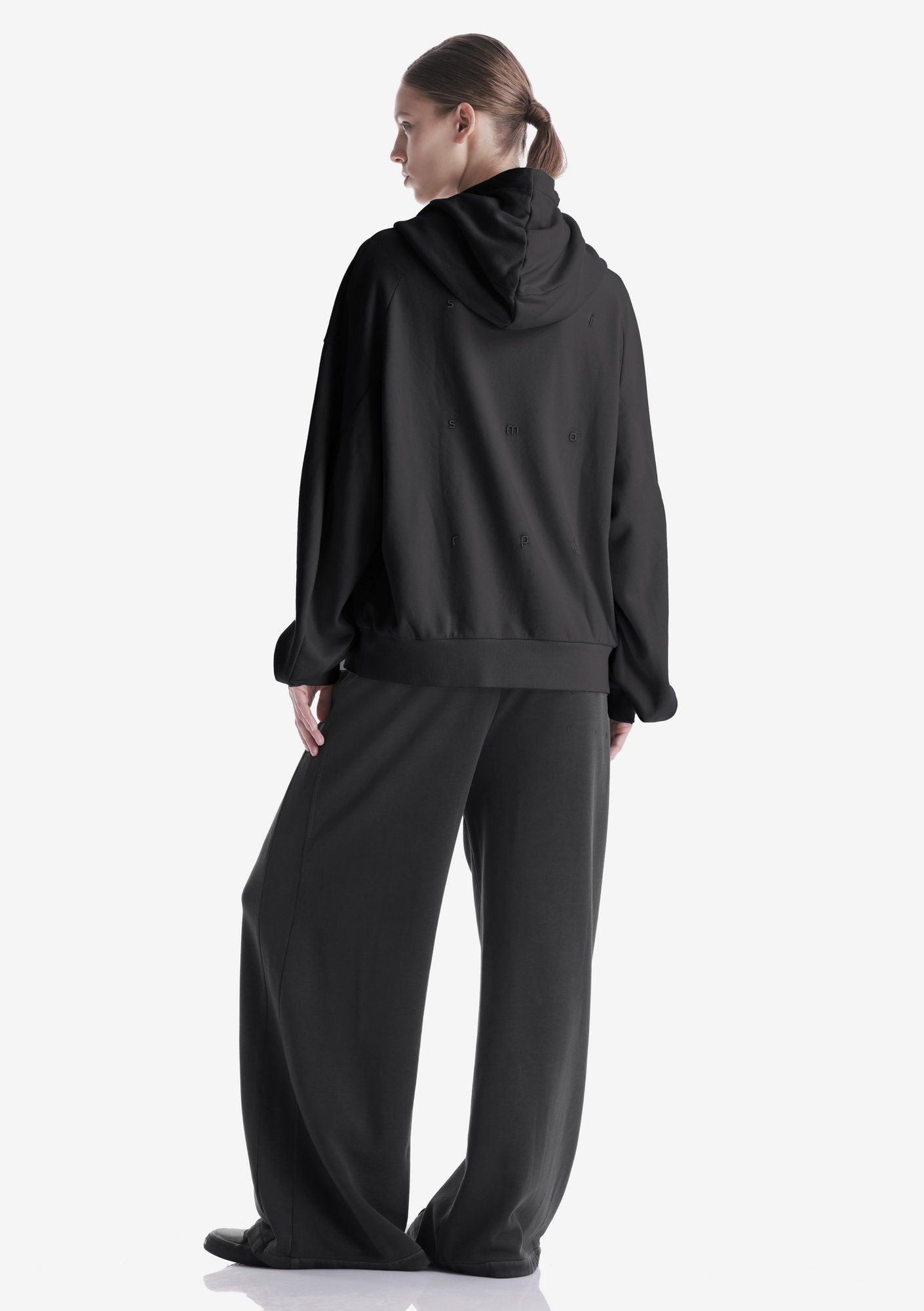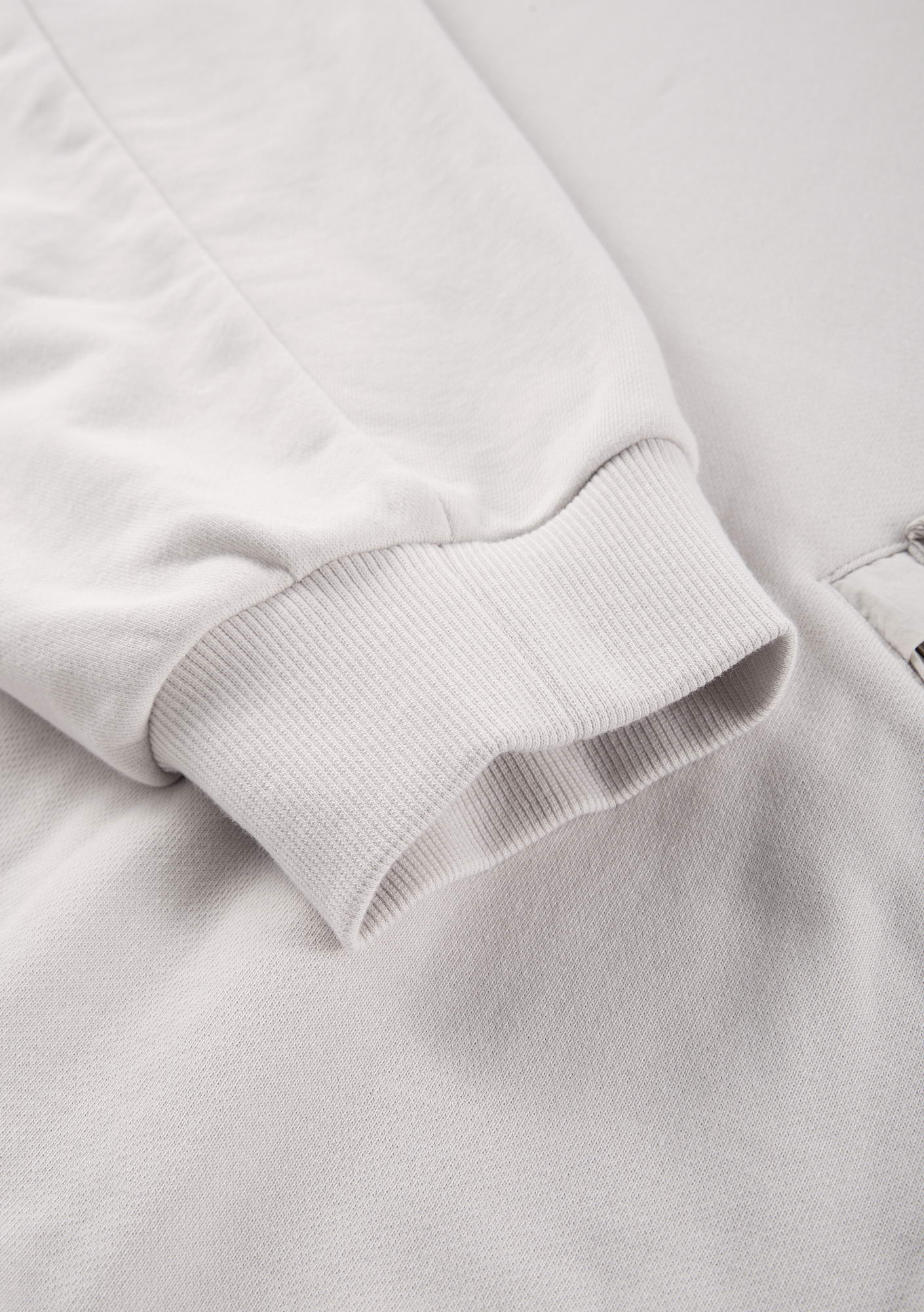 Main fabric made from knitted terry fabric with a weight of 360 g/m². Uniform structure with looped inner side. 100% cotton.