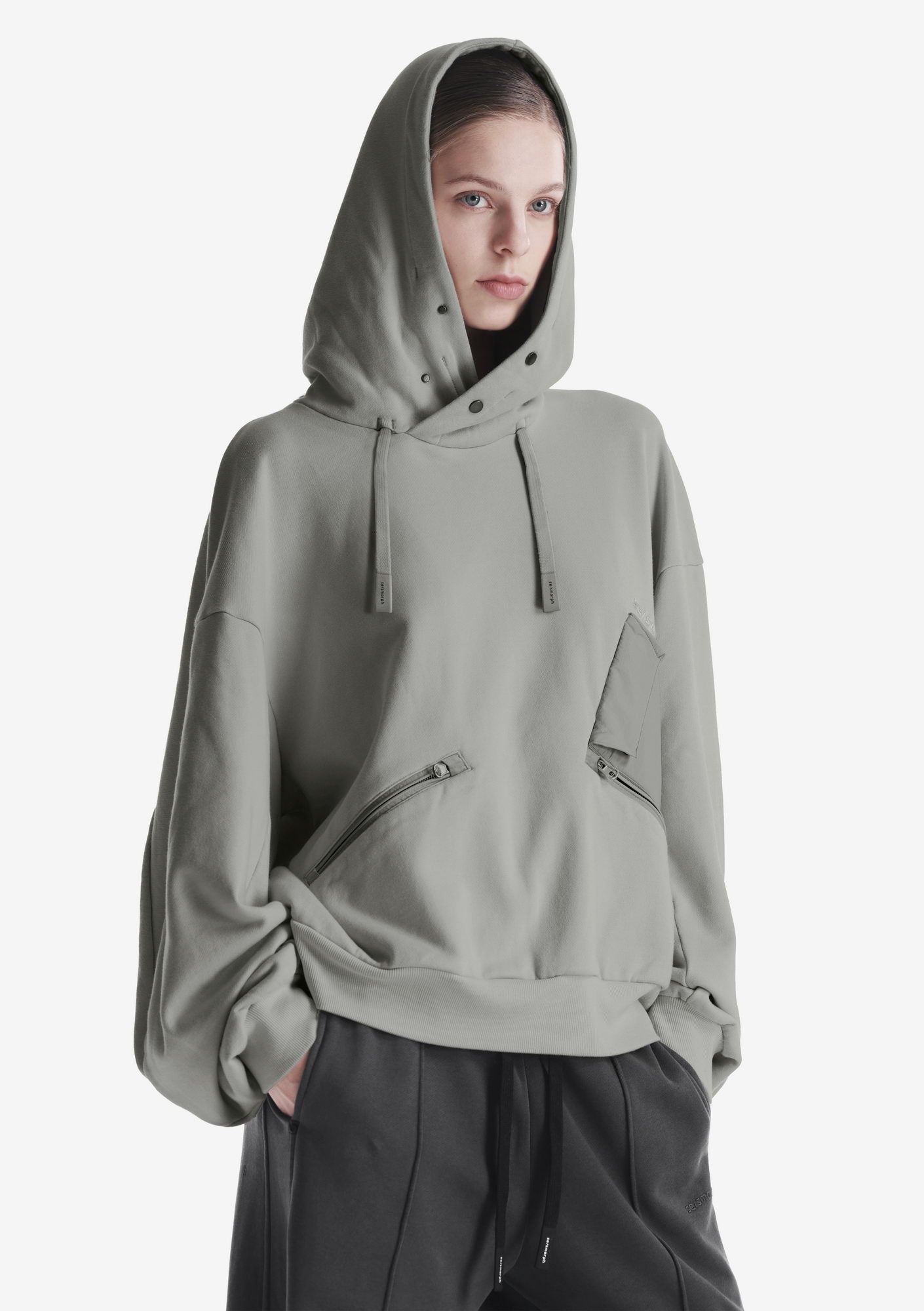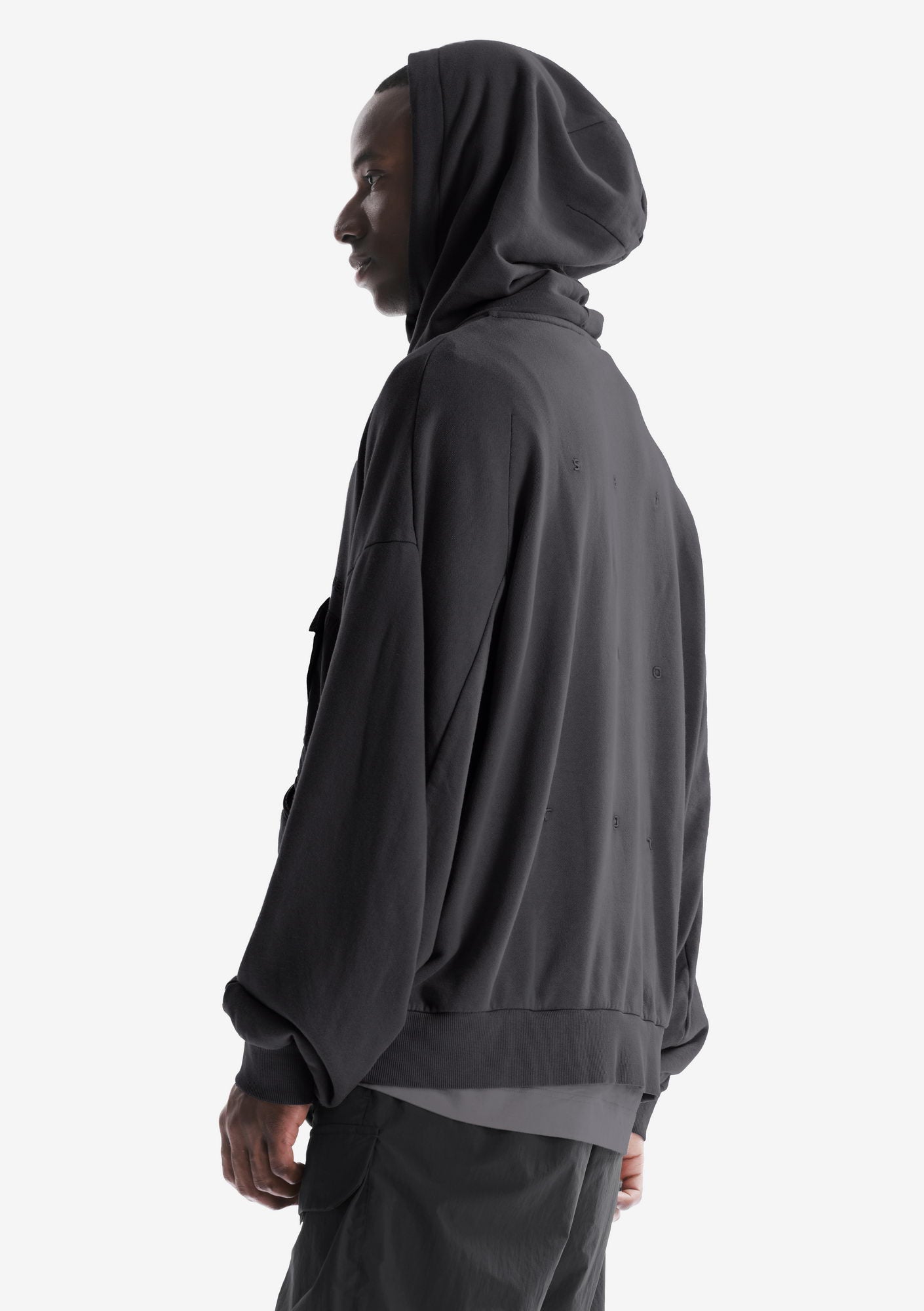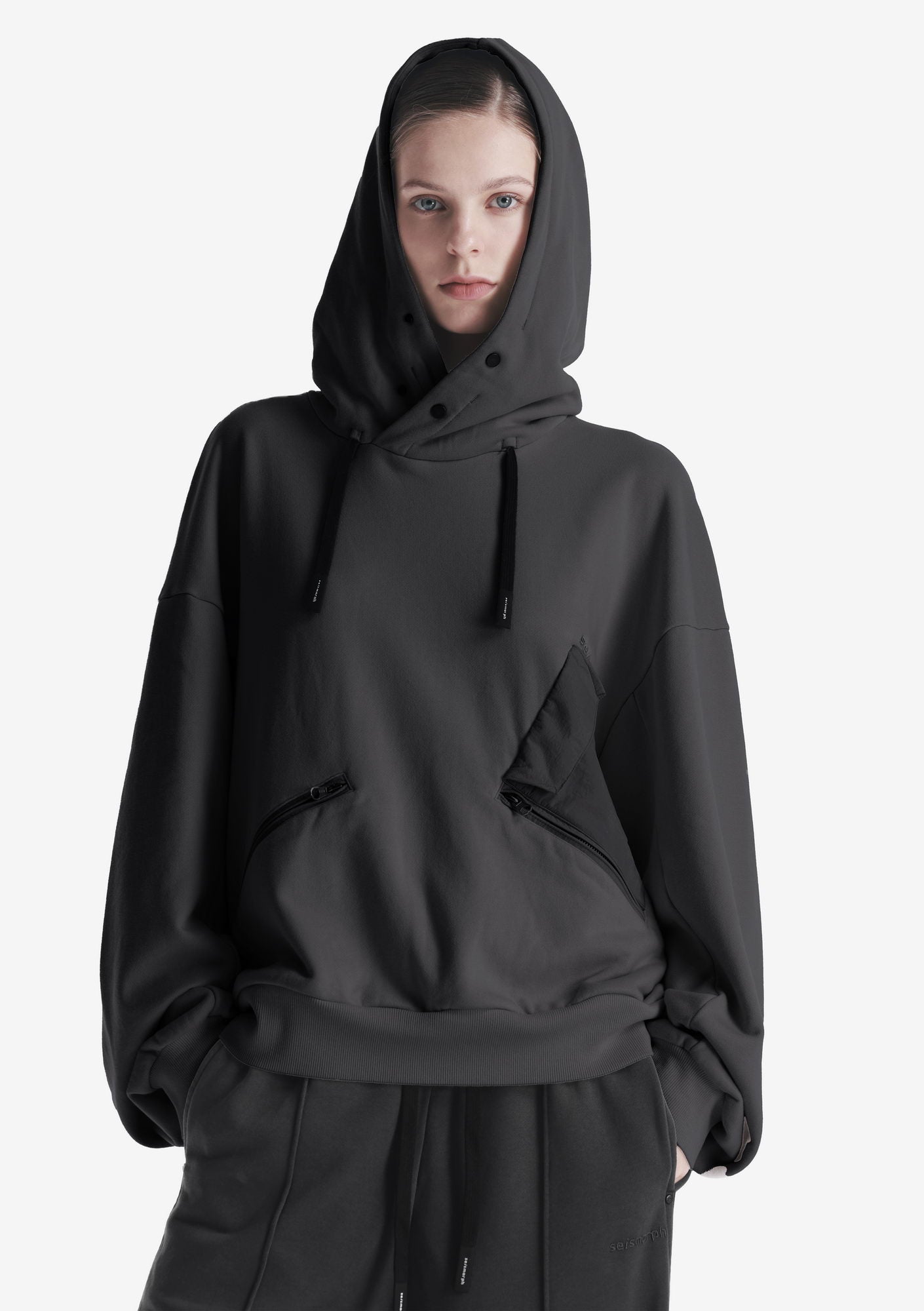 Main fabric made from knitted terry fabric with a weight of 360 g/m². Uniform structure with looped inner side. 100% cotton.