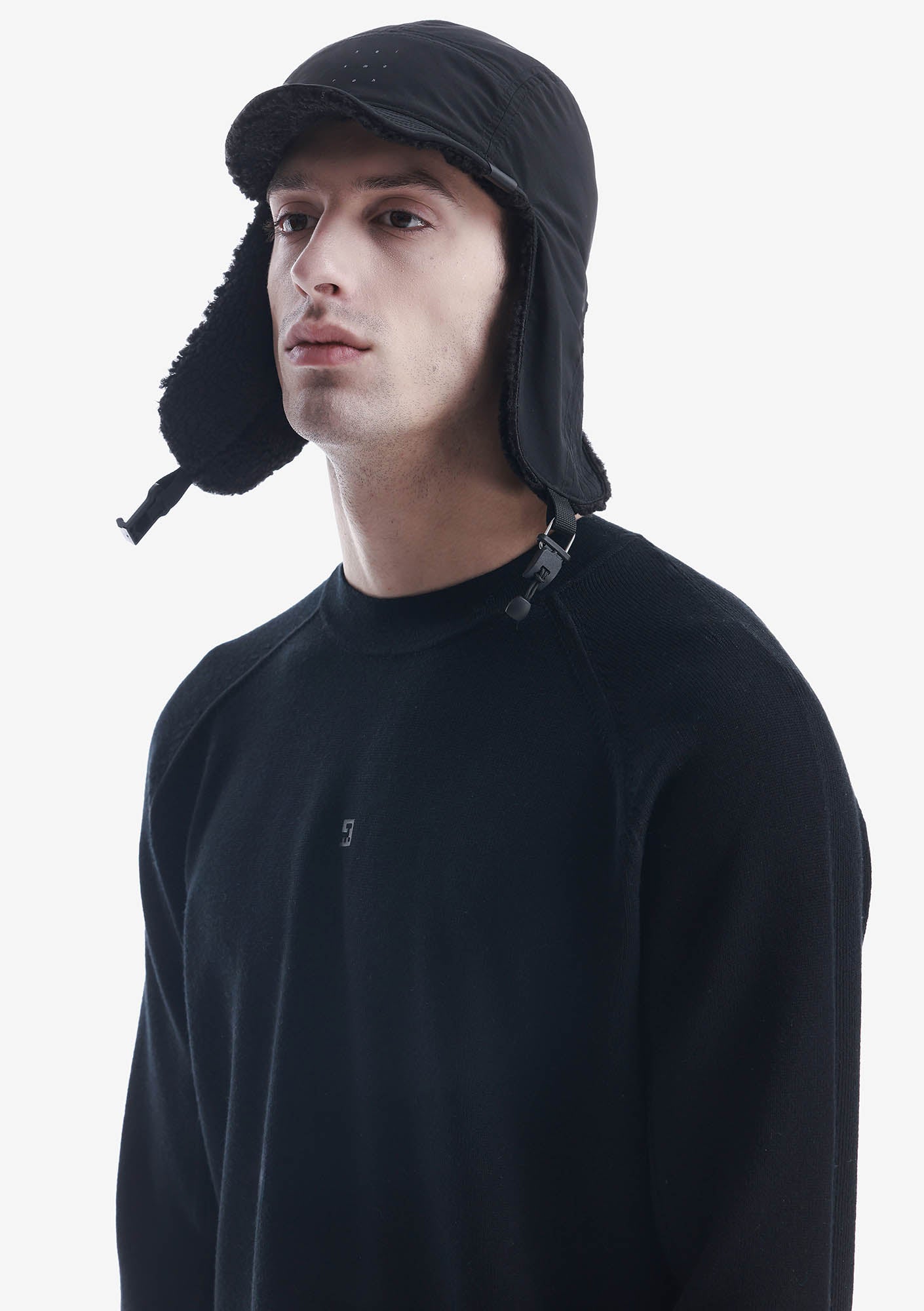 - Buckle fasteners secure the ear flaps under the chin or over the head