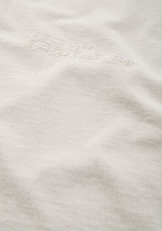 KHURU sleeveless T-shirt made from soft brushed cotton jersey. Embroidery and the exposed center-back seam create a graphic accent, while raw armholes reinforce the relaxed character of the piece.