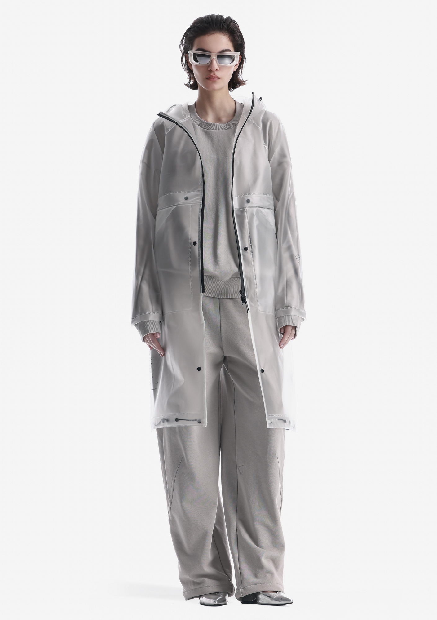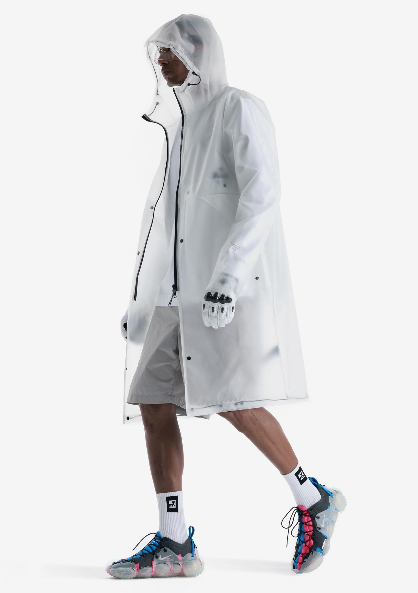 Dense, windproof, and waterproof material with a matte semi-transparent surface. Resistant to abrasion, cuts, and high tensile strength. 100% polyurethane.