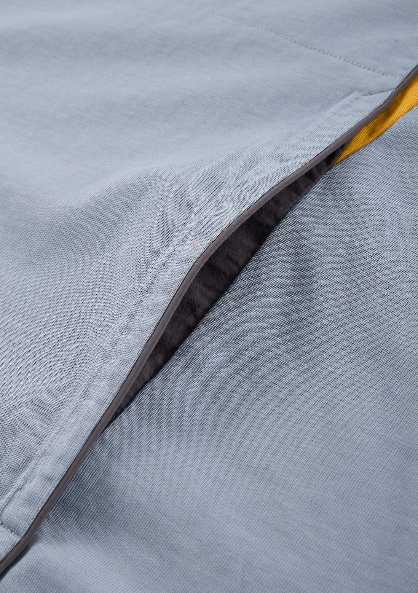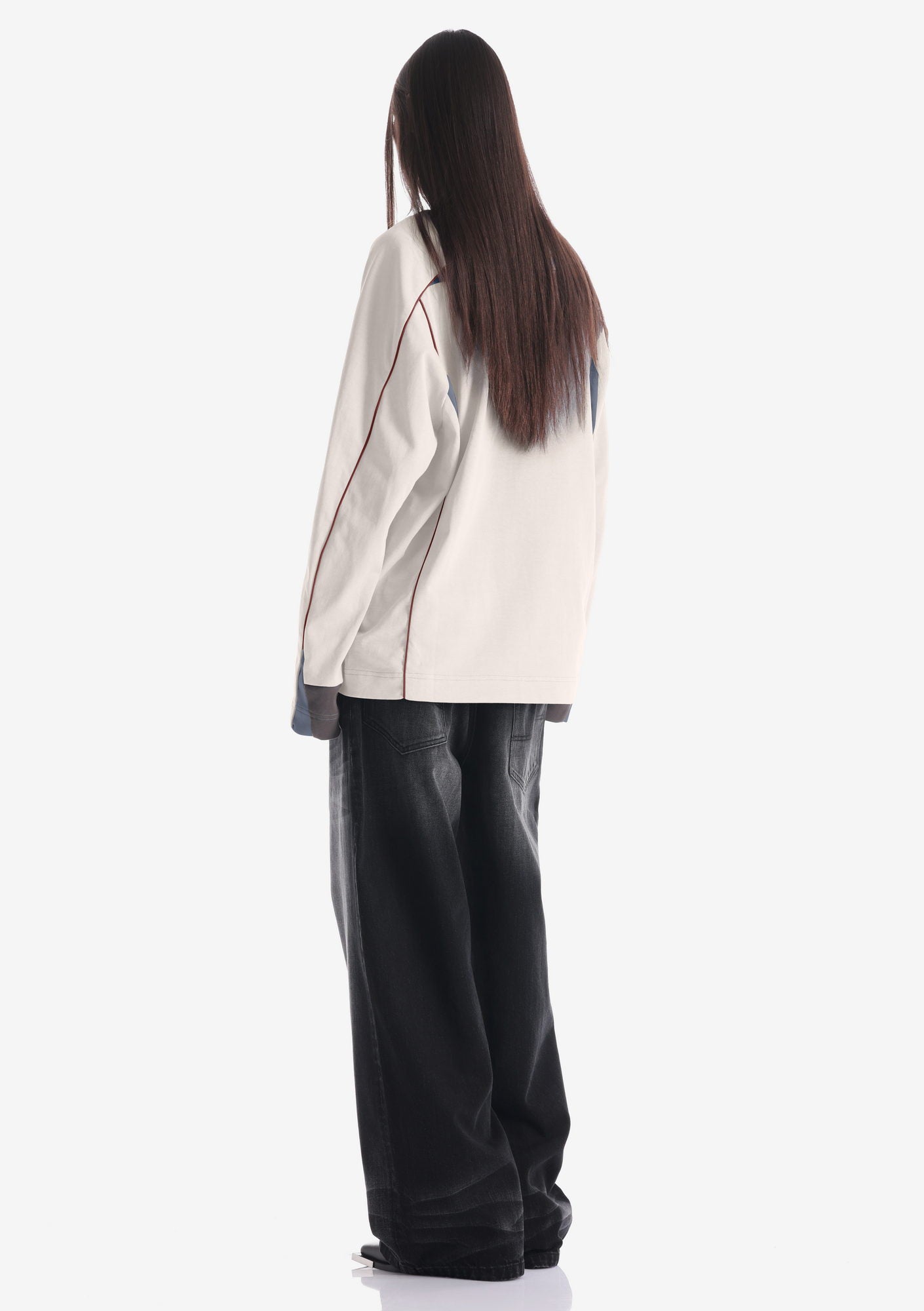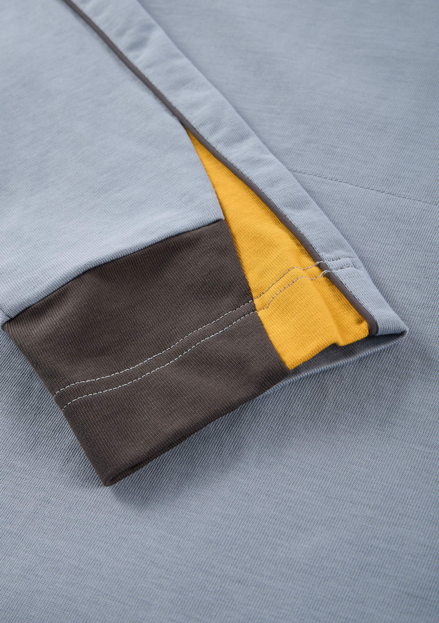 Main fabric and colored inserts made from compact double-yarn jersey, 21s. Dense knit with a uniform structure, weight 320 g/m². 100% cotton.