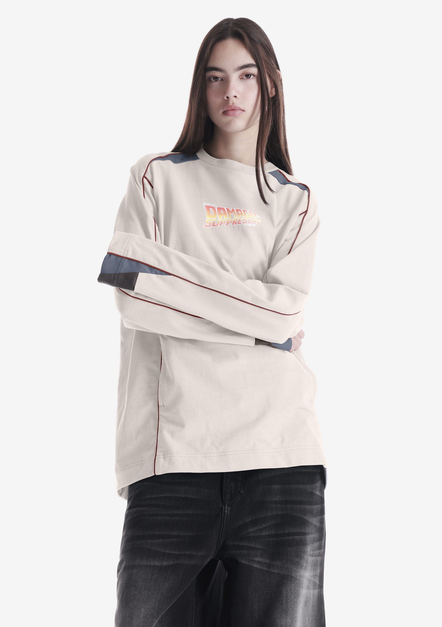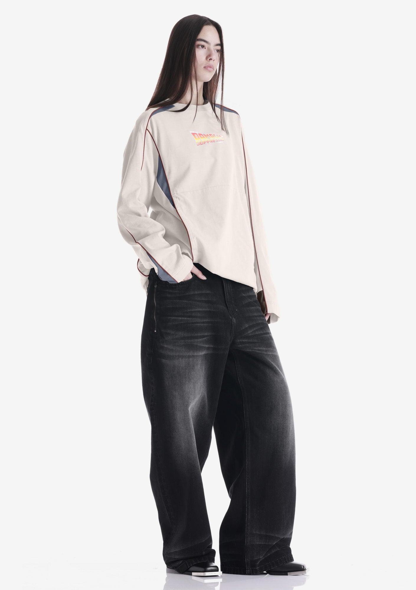 SEMERU longsleeve t-shirt made from dense cotton jersey with a uniform structure that holds its shape and provides comfort. The ribbed crew neckline ensures a stable fit, contrast piping and front graphics add a distinctive accent, while hand pockets and an adjustable hem add functionality.