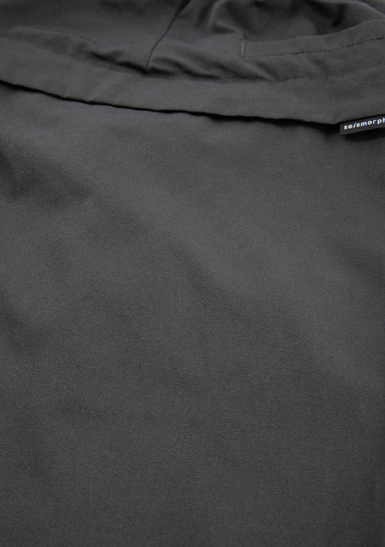 Mid-weight blended fabric. Cotton provides comfort and breathability, while polyester adds durability and crease resistance. The dense weave holds its shape and enhances practicality. Opaque, breathable, and easy to care for — no delicate handling required. 55 % cotton, 45 % polyester.